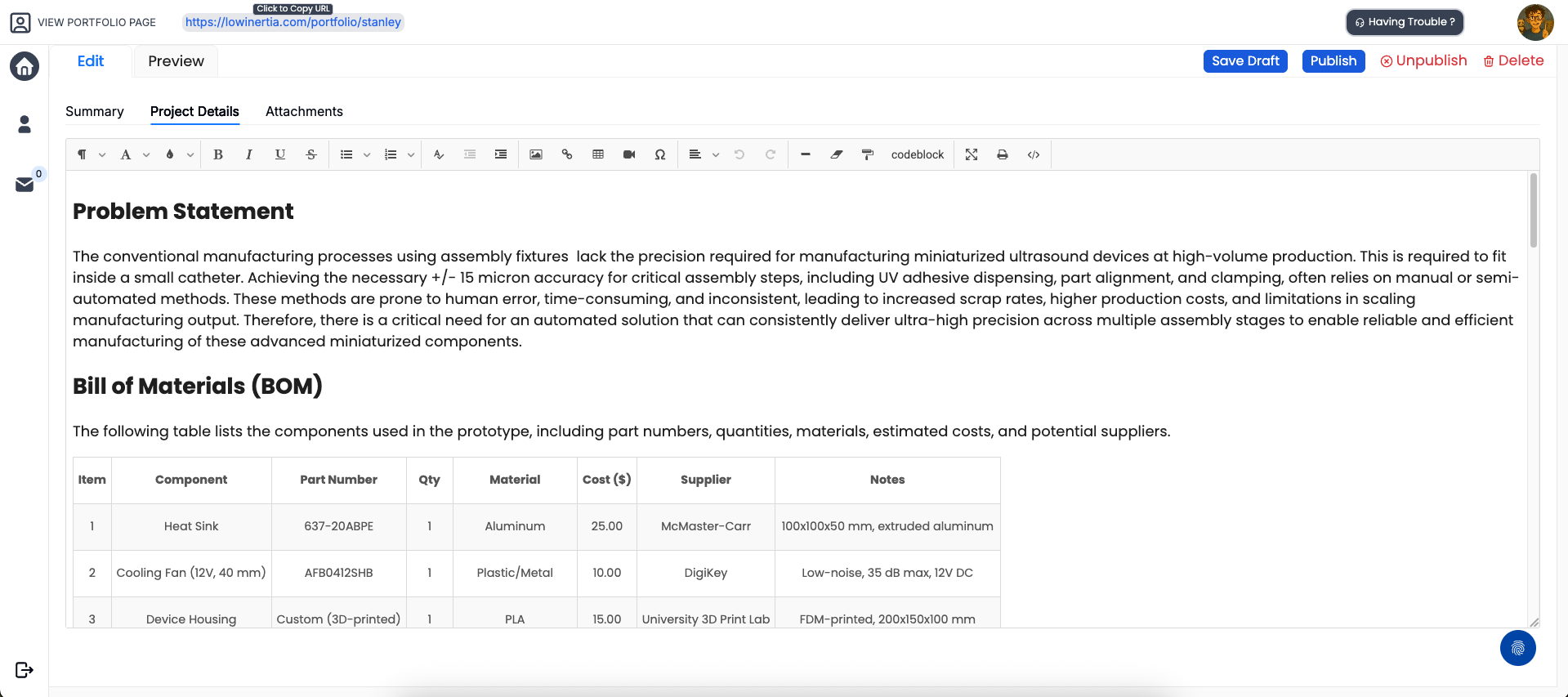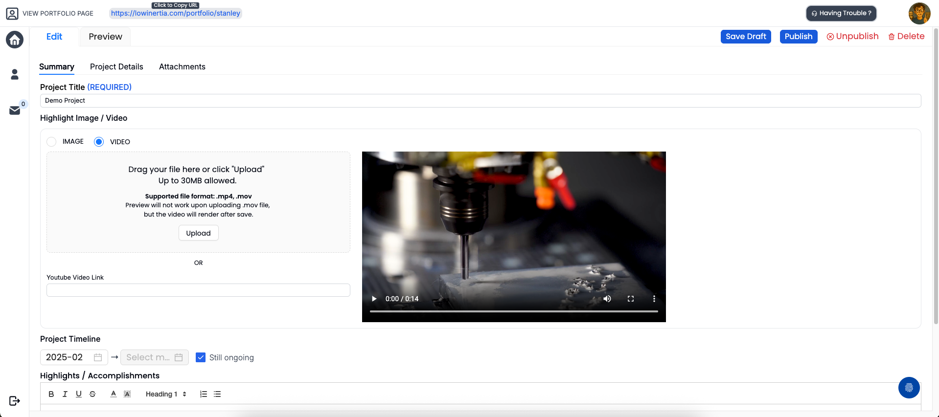 Customize Your Portfolio Page and Manage Project Contents and Messages